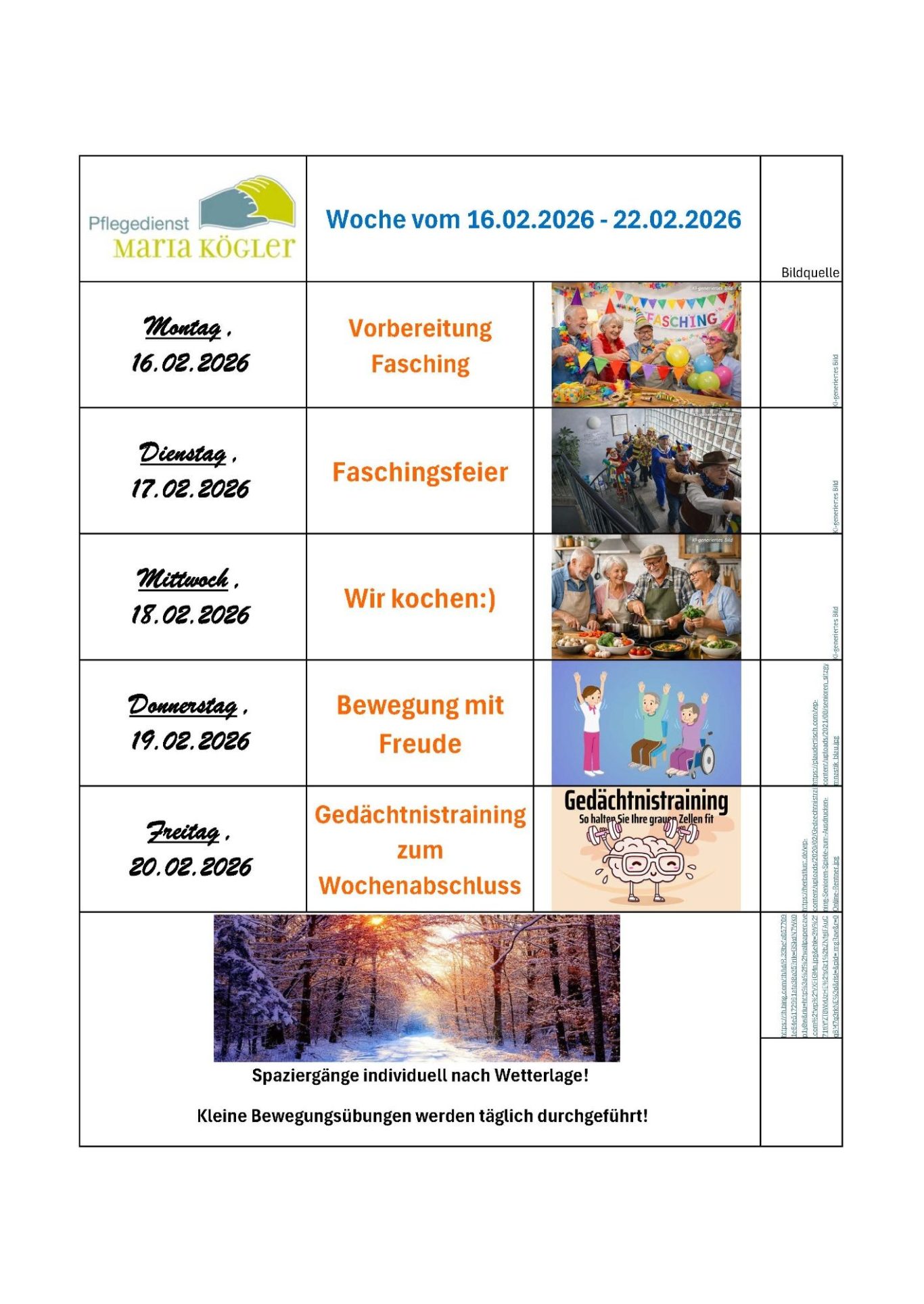 Wochenplan 16.02.2026 - 22.02.2026